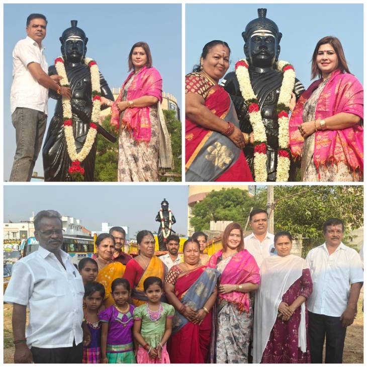 கோவையில் பிரபஞ்ச அழகி கட்டபொம்மன் சிலைக்கு மரியாதை!